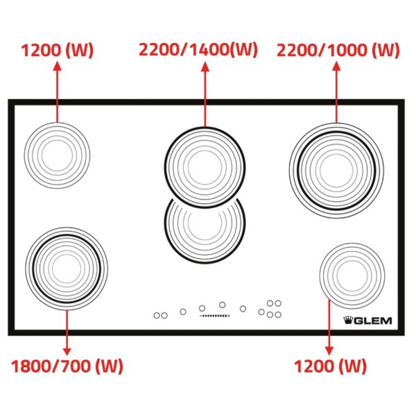 موقد جليم بلت ان 88 سم 5 عيون سيراميك تحكم باللمس - GTH96T