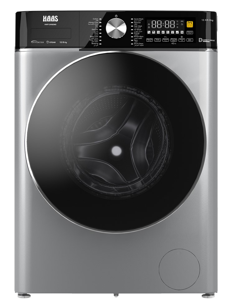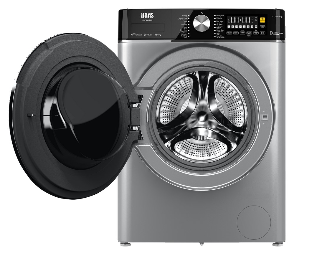 غساله اوتوماتيك فتحة امامية هاس 12 ك سلفر (انفرتر) موديل HWF12W8DMS