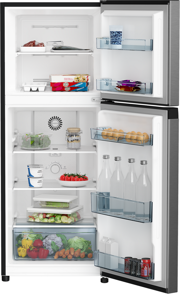كمبروسر انفرتر موفر للطاقة - 3 رفوف من الزجاج في الغرفة السفلية مع 3 رفوف في الباب و غرفة لحفظ الطعام الطازج رف من الزجاجة في الفريزر و 2 رفوف بباب غرفة التجميد