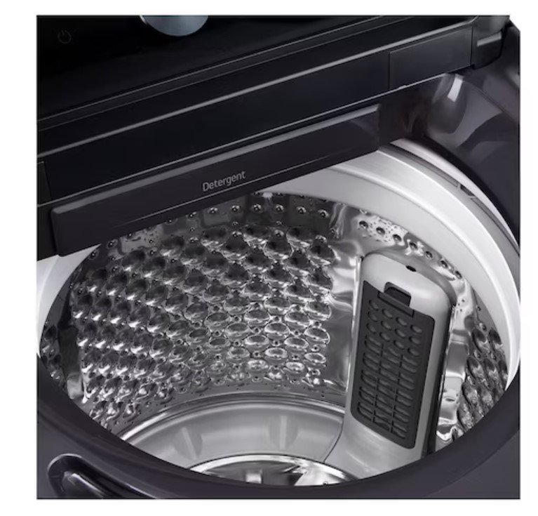غسالة ملابس تحميل علوي سعة 22 كجم | ™TurboWash3D | محرك الدفع المباشر بالذكاء الاصطناعي | بخار | محرك دفع مباشر بست حركات | ™ThinQ | لون أسود بلاتيني