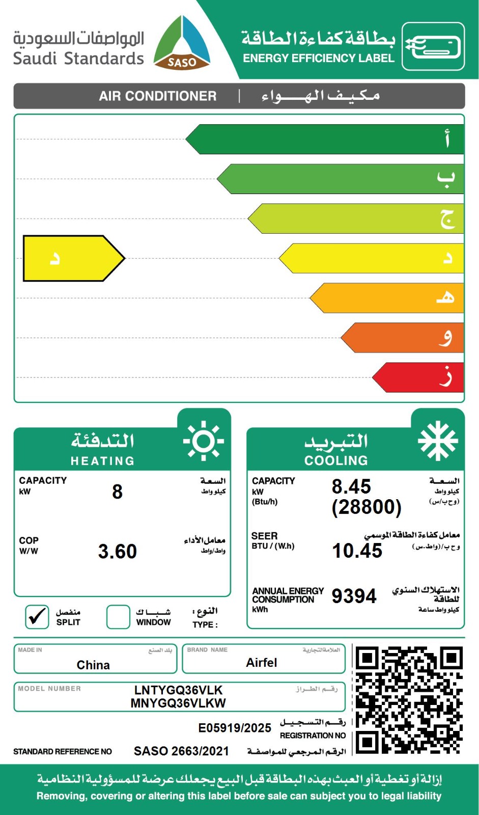 النوع: مكيف اسبليت