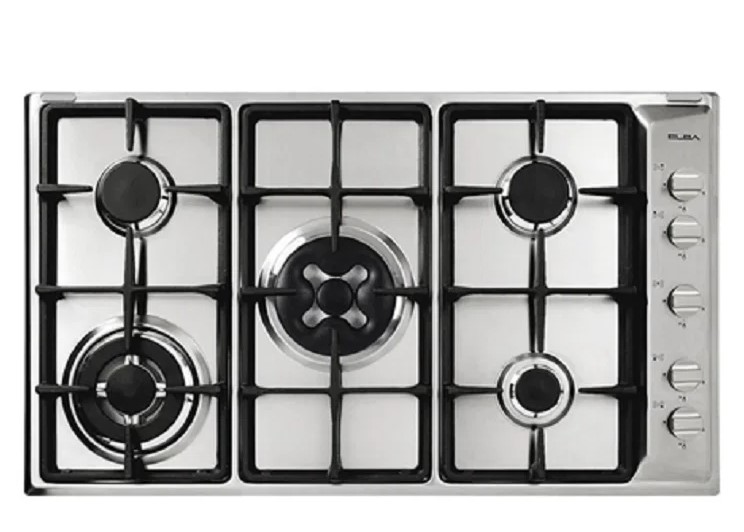 البا موقد مسطح بلت-إن، غاز، مقاس 90 سم، 5 عين، امان كامل، اشعال ذاتى، ستيل - ASEN95-565XD