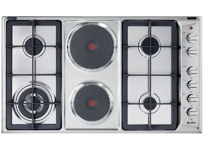 ألبا موقد مسطح مدمج، مقاس 90 سم، 4 عيون غاز، 2 عيون كهربائية، أمان كامل، اشعال ذاتي، صناعة إيطالية، عين ثلاثية، ستيل - ASEN95-420XD