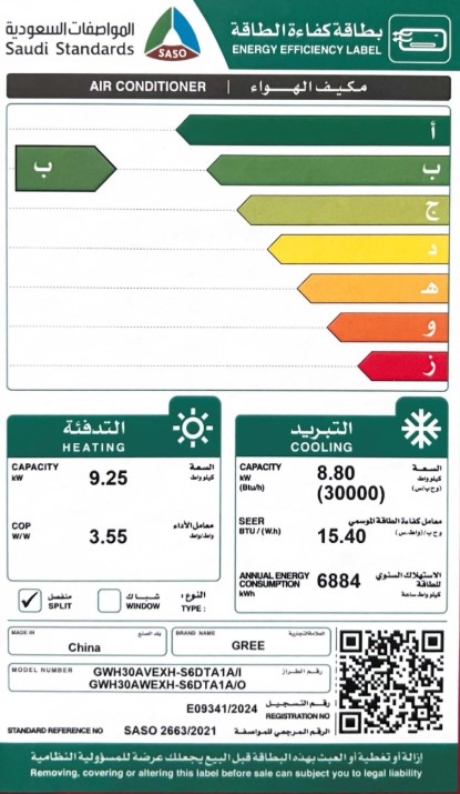 - سعة تبريد وتدفئة قوية تصل إلى 30000 وحدة حرارية (BTU)، مناسبة للصالات الواسعة والمجالس والمكاتب الكبيرة.