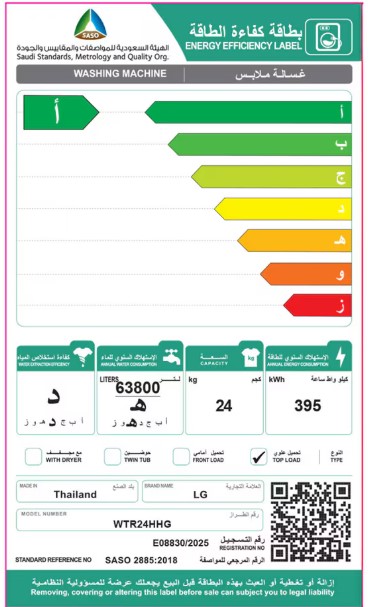 - الحد الأقصى لسعة الغسل (كجم)