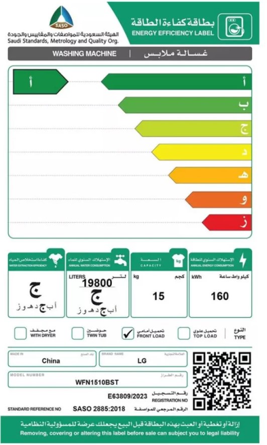 - سعة كبيرة 15 كجم: مثالية للعائلات الكبيرة أو الأحمال الثقيلة من الملابس.