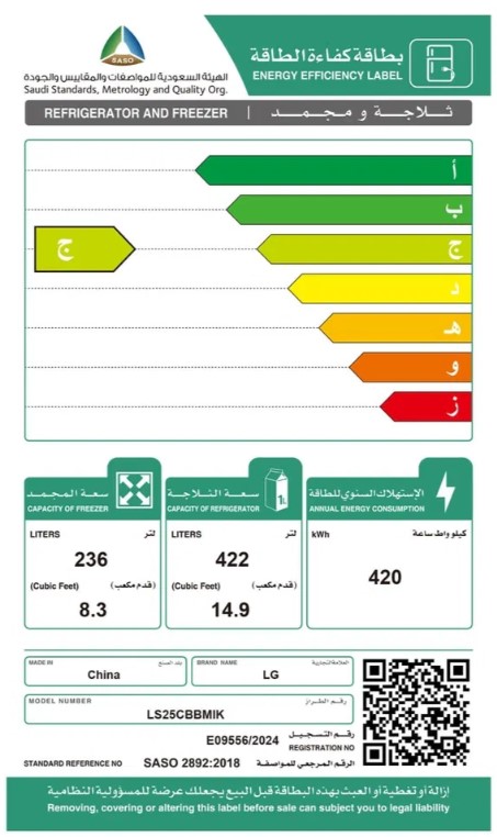 ثلاجة ال جي دولابي 23.2 قدم استيل اسود - LS25CBBMIK الحجم بالقدم | 23.2 قدم فئة كفاءة الطاقة | ج نوع الضاغط | ضاغط انفيرتر ( عاكس ) ضمان شامل | سنتين شامل ضمان مخصص | 10 سنوات على الضاغط صنع فى | China اللون | استيل اسود العلامة التجارية | ال جي الموديل | LS25CBBMIK سعة تقريبية 23.2 قدم مكعب لتخزين عائلي مثالي
