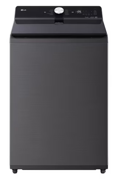 غسالة ملابس تحميل علوي سعة 22 كجم | ™TurboWash3D | محرك الدفع المباشر بالذكاء الاصطناعي | بخار | محرك دفع مباشر بست حركات | ™ThinQ | لون أسود بلاتيني