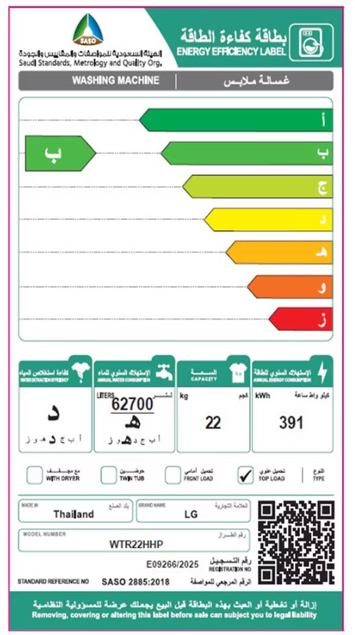 غساله ال جى علويه اسود بلاتيني 22 كيلو بالذكاء الاصطناعي موديل WTR22HHP