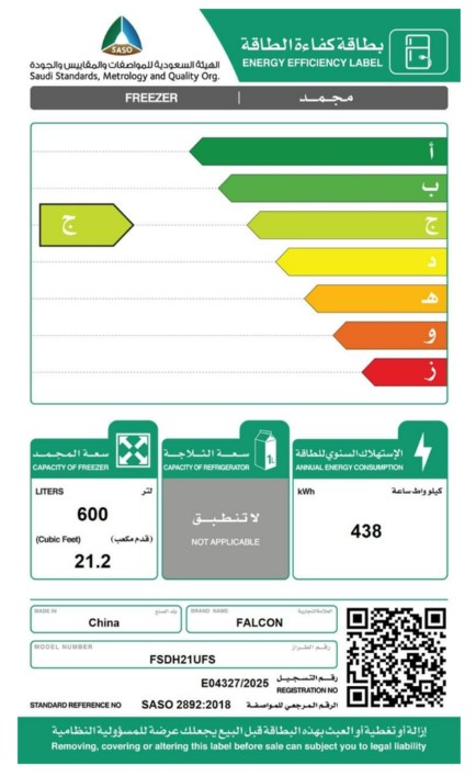 فريزر قائم فالكون 21.2 قدم سلفر FSDH21UFS
