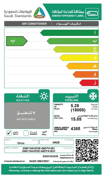 مكيف جرى جدارى اي بلس واى فاى انفرتر قدره 18000 وحده - 18 بارد GWC18AVDXE-S6DTA1A